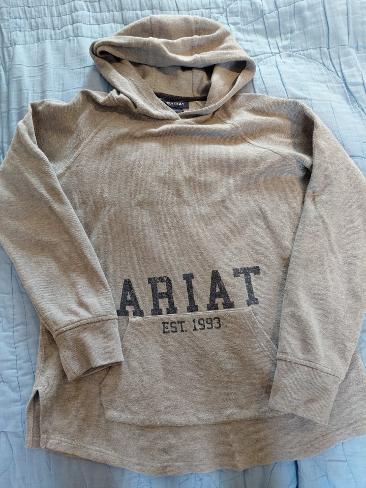 1 only worn once snaffle T shirt xs grey £12Ariat hoodie grey medium worn a few times £5 Collection from Swanmore Hants or postage at buyers expense
