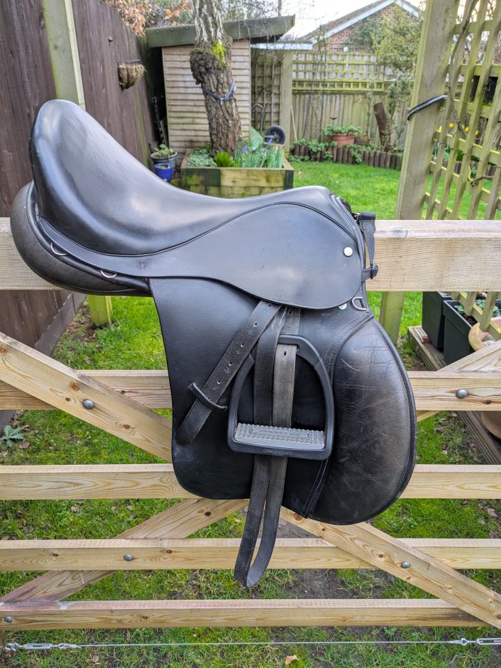 17 1/2" extra wide calcutt saddle black. Made to fit in 2005. It's been regularly checked and restuffed (receipts available). Well looked after but now happily retired. Very comfortable saddle. £350 ono