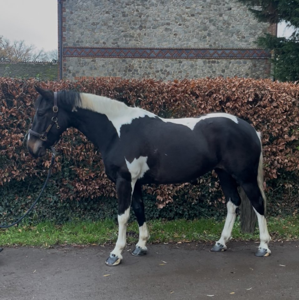 Pippa - full up 14.2, 8 year old cob mare.Pippa is a super sweet and fun little mare that’s done a bit of everything. Takes the leg well and looks and rides more 15hh. Showjumped to 90cm over in Ireland winning a winter 80cm league last season, she’s well established round a course of fences. Done fun rides/hunting/pony clubbed. Hacks alone and in company and isn’t phased by the machinery around the farm here. Leg on ride until you get the jumps out! She loves her jumping, she’s keen and can be strong to jump but a real point and shoot type that makes you giggle and just want to keep having fun. Rides on the flat in a snaffle with Pelham for jumping/fast work which she is totally manageable in but for this reason probably wouldn’t suit a tiny or novice rider.Whilst she would happily carry on and have fun whizzing round some courses, please don’t be put off and think she ‘needs’ to be out doing something. She’s just as happy hacking and doing some polework so she doesn’t need a job but she would do one if you wanted to! Boxed up to the gallops with us recently and worked sweetly in front and behind and enjoyed a little outing. Pippa is an absolute pet on the ground. She is super easy to have around, lives for a fuss and a groom (and a carrot or two!) and really is a best friend type. Good to catch/farrier/load/travel etc. Passed 5 stage vetting before import. £9750 Ono 07581238106 - please WhatsApp message for videos. If you call and I don’t answer please send a text - NOT voicemail (they don’t work on my phone!) and I’ll get back to you.Located Farnham Surrey.