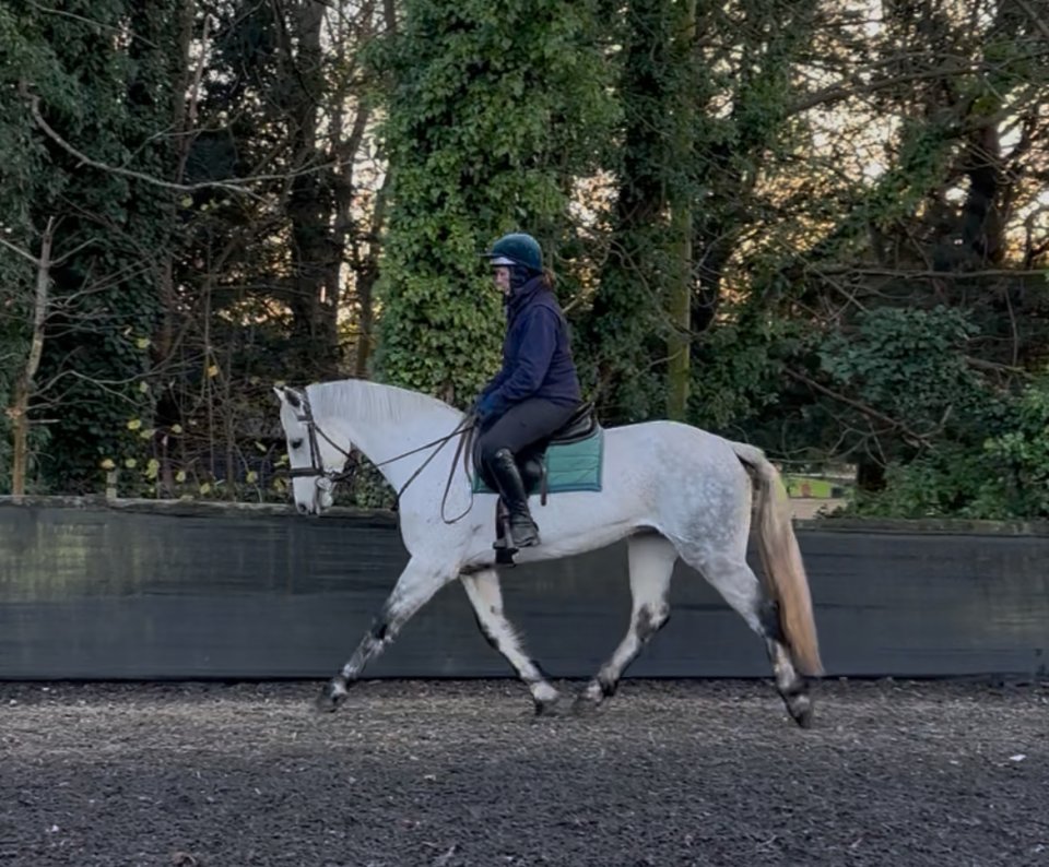 15.1hh 11yr old Grey ISH Gelding 3 nice paces and established on the flat with a bold scopey jump proving genuine to a fence. Been to numerous arena hires, XC schooling and UA competitions. Good to hack alone and in company, great in open spaces and traffic. He doesn’t like it when he gets left miles behind from the horse in front and he will pop in a little bronc if you do. For that reason I don’t feel he’s suitable for hunting. Super fun horse for a competent teenager or small adult. Not a novice ride due to the above. £11500https://youtu.be/6hnlNP1pE40?si=PKpL2JPgGZKnHvEb