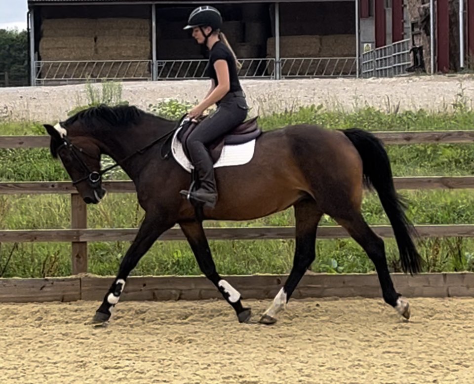 For sale dream pony - 14.3hh Bay Mare 5yrsSerious talent, with a heart and temperament to match, this pony is a rare find combining excellent technique and trainability.Successfully competed in unaffiliated classes up to 90 and confidently training over BE 100combinations XC, this pony is both brave and careful. She is snaffle mouthed (inc hunting) and has an incredible brain and “can-do” attitude. No vices and open to vetting. She is a kind mare ready to find her new partner to fulfill her potential. This pony will turn her hoof to many jobs and is equally quiet enough for a family / pony club homeGreat to hack shoe, clip catch, load etc.