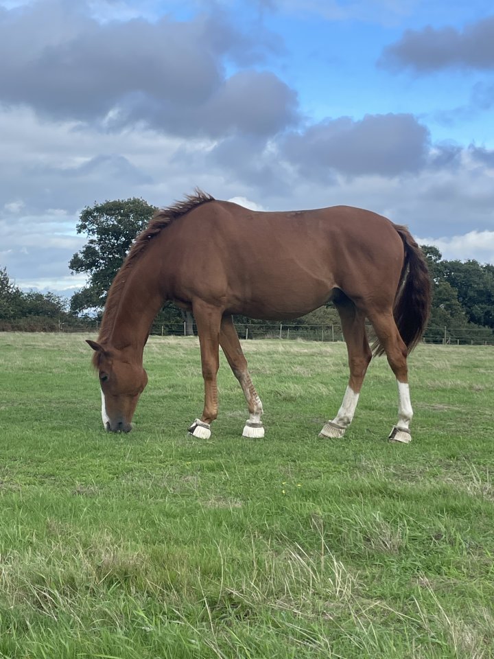 For sale:16.2hh 15yo ISH mare Good to clip, shoe, up to date with teeth/back/vaccs. Will live in or out. Qualified for BRC national champs this year in novice dressage. Has lovely paces and always produces a nice test, however she’s not one to be constantly schooled as she gets bored and switches off. Impeccable manners on the hunting field and would make an ideal mother’s hunter/mother & daughter share. She’ll stand at the meet for you to have a glass of port, never strong or silly and will happily stay at the back on the buckle while the rest of the field goes past. She’s been on fun rides, beach rides, competed in dressage, riding club SJ & working equitation. Bombproof in traffic, currently lives on a working farm so used to large machinery/livestock. Always well behaved in company but can be nappy to hack by herself.She absolutely loves attention and is used to young children and is always extra careful around them. She doesn’t have a bad bone in her body but has some minor quirks which will be fully disclosed, therefore is not a novice ride and will require a confident but understanding home. Comes with tack (incl. recently fitted Albion jump saddle) and some rugs. More photos & videos available on request.£6500