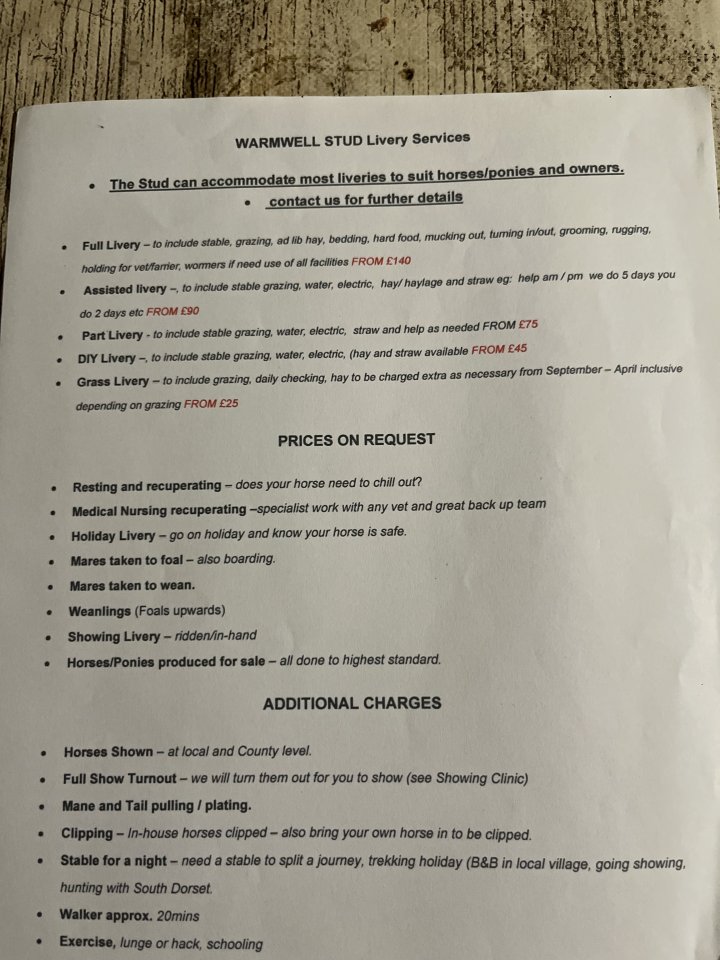 *** 11/11/2025 - spaces now filled**** 2 x 5 day Basic Livery spaces available from 1st December 2025 (DIY weekends) includes stable, grazing, turnout or bring in only, full use of all facilities, direct off road hacking from the yard, indoor and outdoor school. Turn out EVERYDAY on grass in winter, dry well maintained fields and in at night and overnight turnout in summer months. Would ideally suit 1 owner with 2 horses as own field available and other services available on request. Emails and calls only please , texts will not be responded to