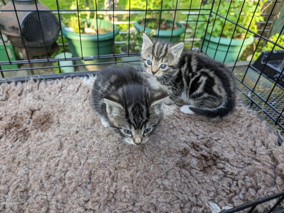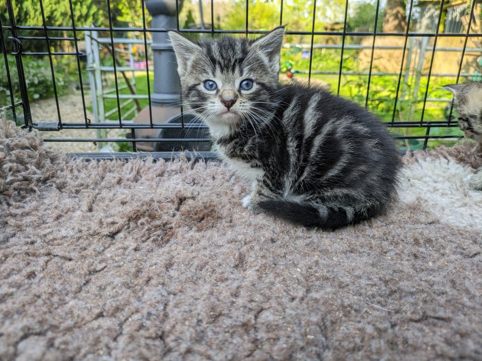 I have a litter of 5 beautiful tabby kittens, they are different shades of tabby2 female with white markings3 male, 1 with white markingsWill be wormed and flea treatedReady after 17 th may£150 each, viewings welcome