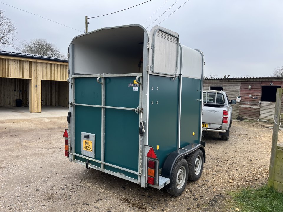 Ifor Williams HB505 in excellent condition. This much loved trailer has been completely refurbished and we have receipts for all work done. Aluminium plank floor 5 new tyres November 2023 New brake shoes October 2023 2 new genuine Ifor Williams side panels fitted October 2024 (videos available of panels being replaced) Ramps and front panel checked and solid New jockey wheel October 2024 All new brake cables October 2024 Lynch pins replaced with new safer ones which don’t jump out on both ramps New eyelet hooks to breastbar attachments both sides with bar to release quickly if horse ever gets over breast bar. New leaf springs at the front October 2025. This is an excellent safe horse trailer of the much sought after late HB505 edition. Last serviced October 21st 2025. Same owner last 13 years. Wheel clamp included in sale. Only reason for selling is due to changing to a 3.5 ton Horsebox as no need to travel two horses now. Walk around videos inside and out available. £3495 ovno