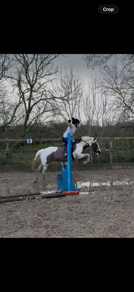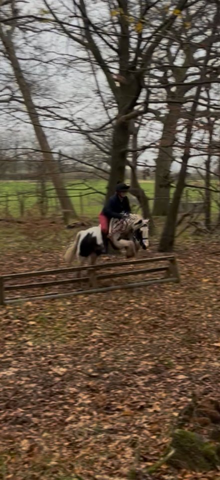 Gorgeous piebald mare 9 years standing at 125cms Clover is a super little pony with an adorable personality. She is lovely and gentle on the ground and will stand all day to be fussed over by children. Experienced being ridden by of all levels of ability. Happy to be on the lead rein but would excel as a second pony. This gorgeous girl loves life and wants to please, she enjoys jumping and popping the logs in the woods. Clover has enough bone for a small light weight adult to ride her. She has been to local showjumping events, sponsored rides, hacks alone and in company on the buckle. Clover rides in a snaffle at all times. She has a lovely soft mouth, responsive to the leg and is not spooky. Clover would suit any type of home but an active home where she will be able to have fun and be a big member of the family is sort for. She’s good to catch, clip, farrier, travel and stable. Currently in full work ready to go and enjoy the summer £5500
