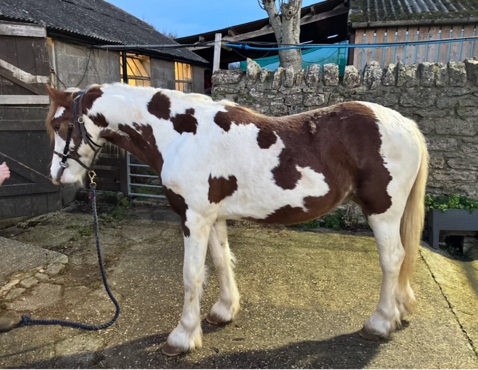 Currently standing 14h this lovely chap is expected to make min 14.2h. 2 year old. Marked like a map and very eye catching. Clean limbs, straight and correct. One blue eye and one eye is half blue. He is very well handled and owned since week old. A well behaved gelding who is polite and likes to please. He is excellent with farrier and vet. Leads and ties up, excellent to groom etc and happily stands to be hosed/bathed. Bitted and worn a roller. Currently on daytime turnout on own and happy on own or with others around him. Stables happily. Has seen tractors and chickens and cats! He has seen the hunt when they have been local. Respectful of electric fencing. Loads into trailer. Passported, vaccinated and wormed up to date. No vices. Never needed veterinary attention apart from routine vaccs and castration. Eligible registration TGCA CHAPS BSPA £2000 open to offers Only for sale as concentrating on mares and fillies.